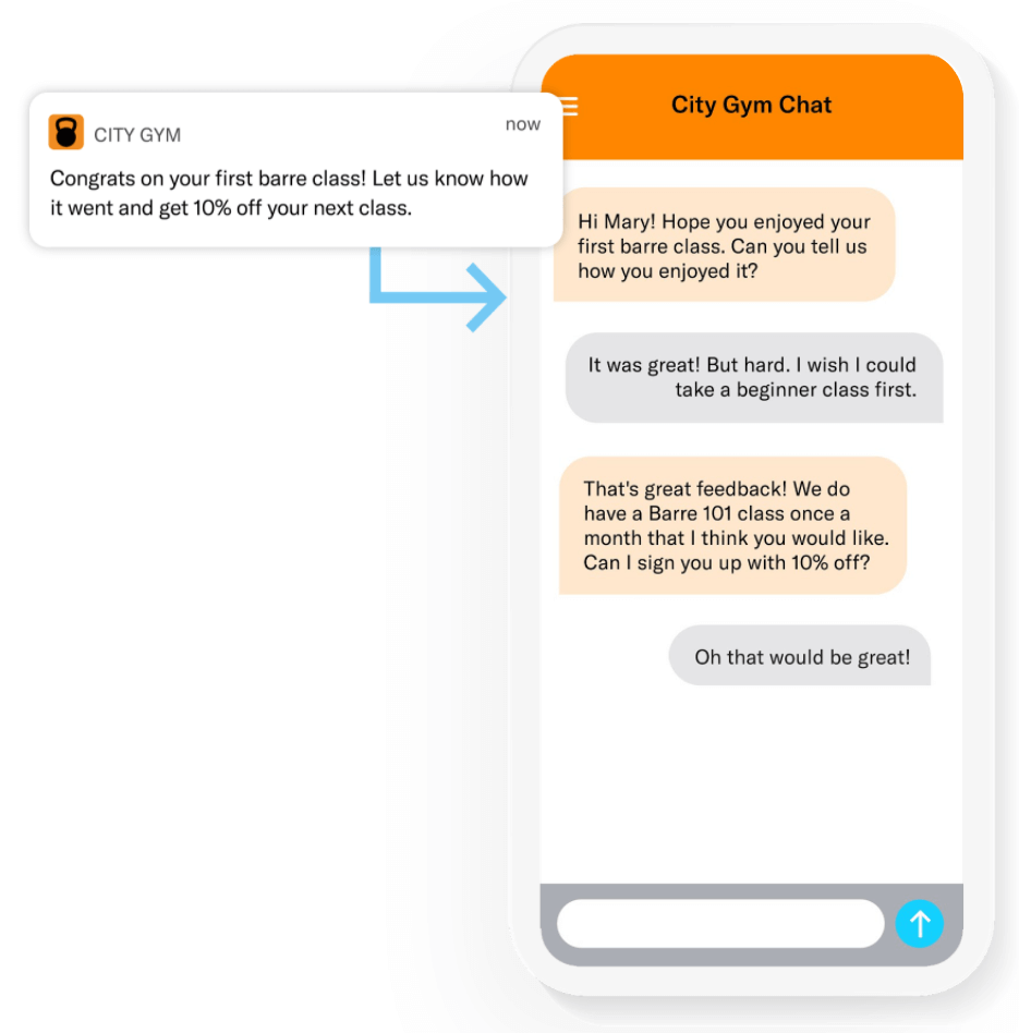 While many brands turn to AI chatbots for in-the-moment engagement and support, the reality is that most people (86%) prefer talking with another human. And when the customer’s only other options are emailing or calling, that creates friction that increases the chances they’ll walk away. The key to Live Chat is the ability to trigger 1-to-1 chat interactions from any marketing channel in those pivotal moments. Trigger live chat opportunities based on customer actions, location, behavior, or any other data that makes sense for your brand, so you can be there to: